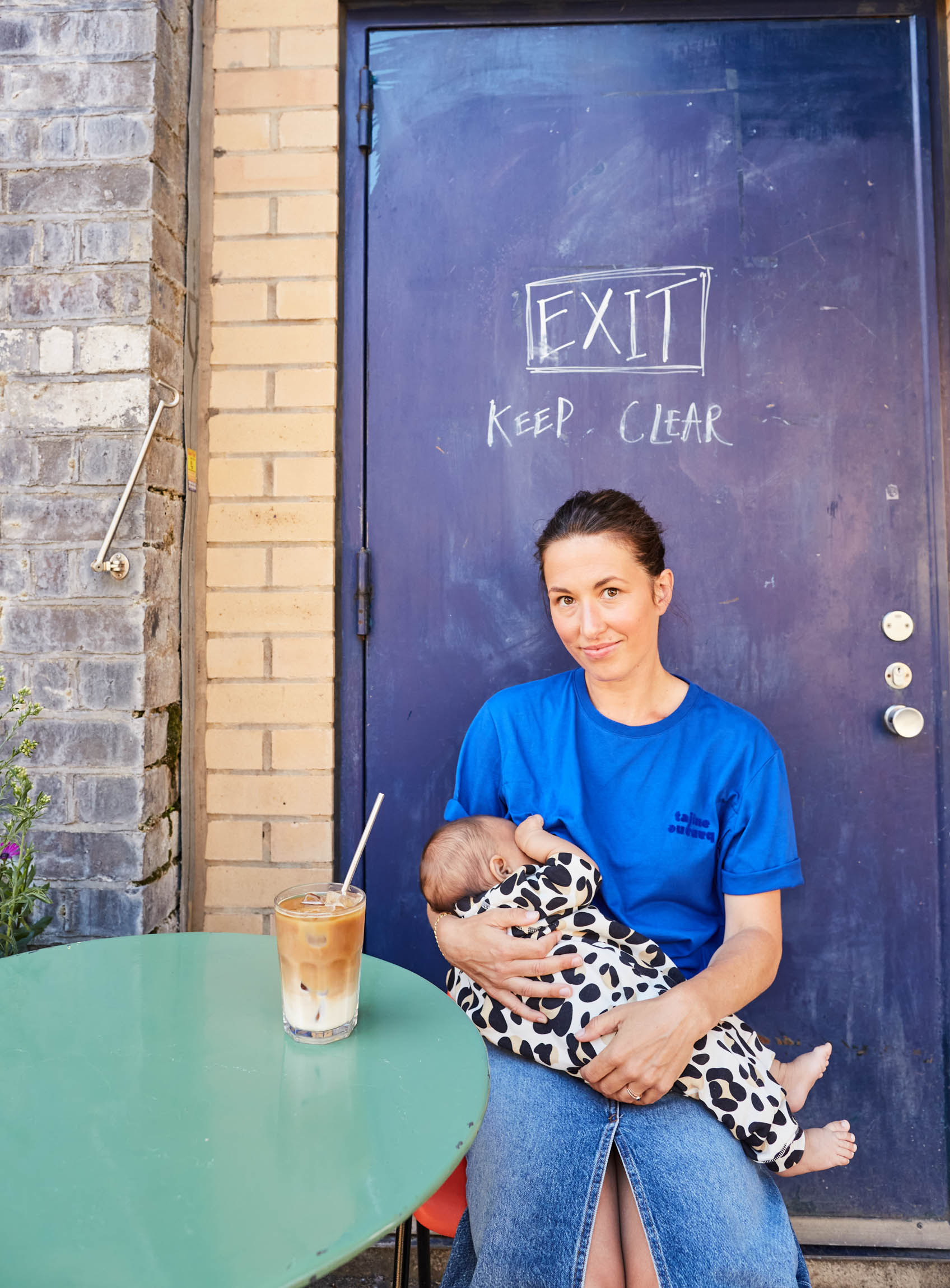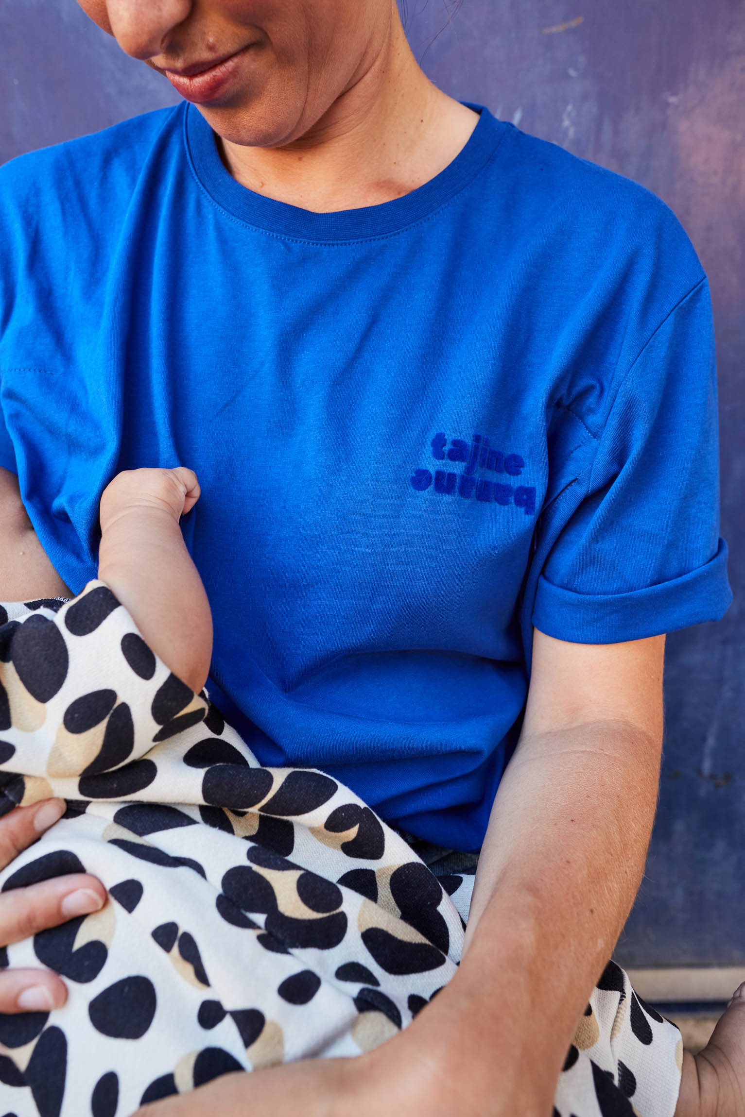 בייסיק כחולה בגזרה מרובעת. מפתחי הנקה בצדדים.