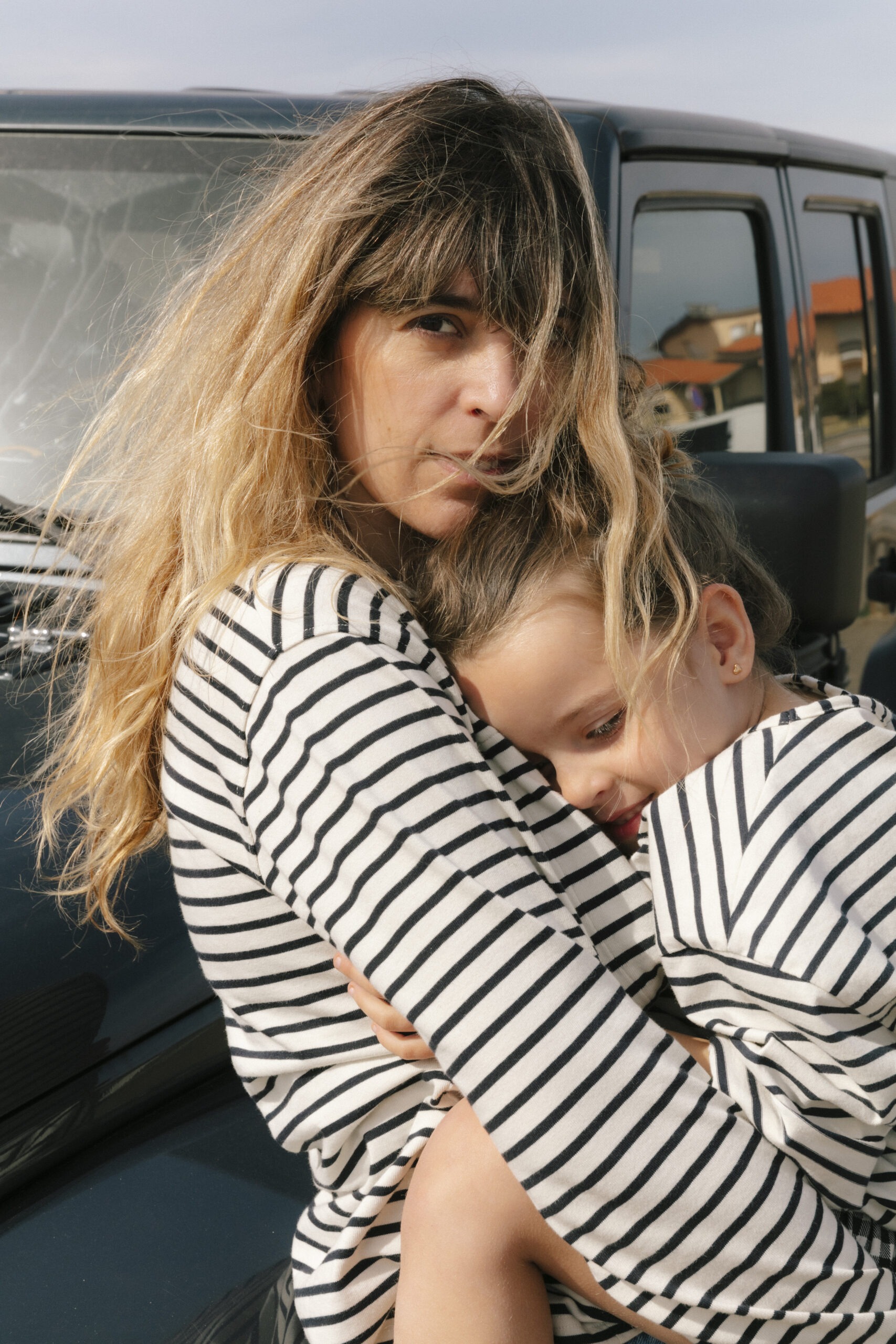 הדפס פסים , כותנה אורגנית, מפתחי הנקה בצדדים